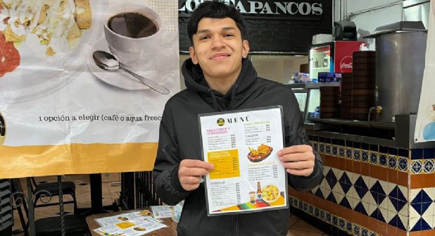 Tal es el caso de Brayan Bernal, joven mesero del restaurante Los Tapancos, ubicado en el corredor Morelos, en Monterrey, quien tiene que entrar al quite con todo y el intenso frío, buscando entre los pocos transeúntes algunos comensales con ganas de almorzar.