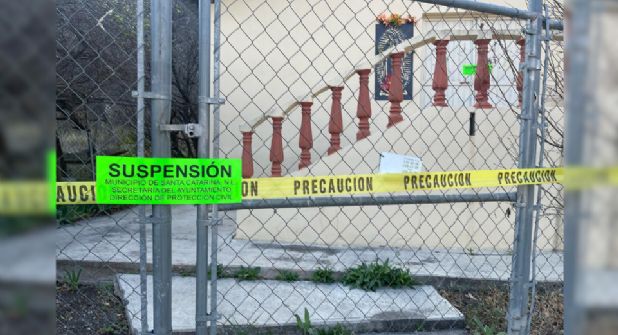 Santa Catarina.- Ante el riesgo de un deslave y con el objetivo de proteger la integridad de las personas, el Municipio de Santa Catarina, a través de Protección Civil Jaguares, ha resguardado el acceso a la iglesia de la comunidad de San Antonio de la Osamenta, en la Sierra Alta.