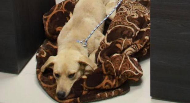 En la fotografía el perrito aparece acostado sobre una frazada, mientras tres mujeres de la administración de García lo acompañan en este proceso.