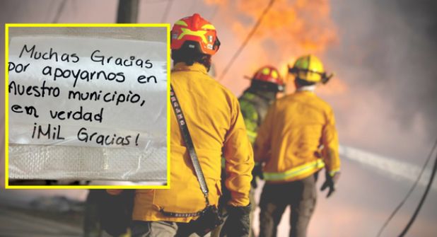 En reconocimiento de su labor, habitantes de García, el segundo municipio que tuvo más incendios este martes, escribieron a elementos de Protección Civil y de Bomberos mensajes de agradecimiento, los cuales llevaron hasta la brigada que se instaló en este municipio para las labores de sofocación.