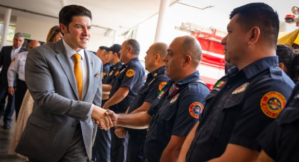 Durante un evento realizado en la Estación Central de Bomberos de la avenida Constitución, el gobernador Samuel García, resaltó que es primordial que los elementos de bomberos cuenten con presupuesto suficiente, salario digno y tengan el equipo y las herramientas necesarias para desempeñar su trabajo.