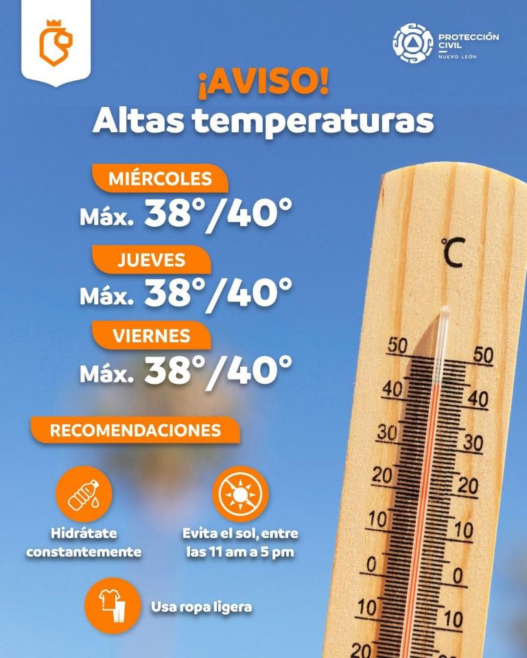 Monterrey. - Ante el incremento de las temperaturas en los próximos días, Protección Civil de Nuevo León ha emitido una serie de recomendaciones para el cuidado de la ciudadanía y la prevención de incendios.