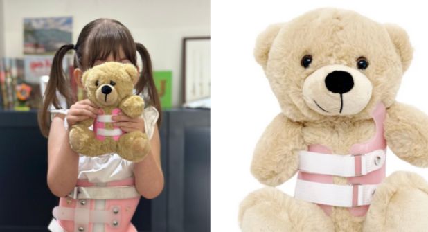 “Es el mismo que tiene que usar mi hija, por ejemplo, porque ella tiene la enfermedad. Lo que hacemos es recaudar fondos para donar ositos; existe una fundación en Estados Unidos que donan ositos a pacientes con escoliosis y estos ositos usan un corset igual que Julieta y otros niños y niñas”, explicó.