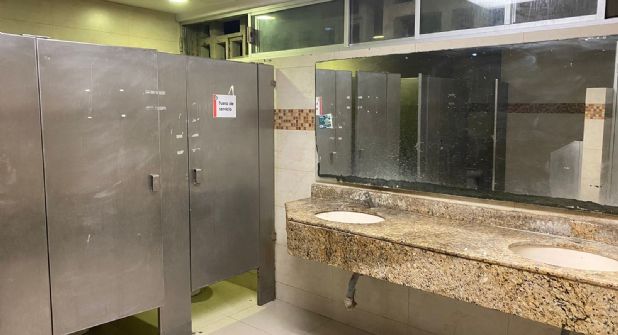 Además, uno de los lavamanos no cuenta con llave. El panorama en los baños de mujeres no es mejor. Varios lavabos están fuera de funcionamiento, tres inodoros permanecen inhabilitados y los espejos están sucios.