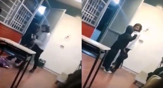 “Porque me avientas, no empieces con tonterías”, exclama la maestra.