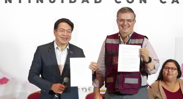 Mario Delgado, presidente nacional de Morena, señaló que Ebrard también entrega en un sobre cerrado su propuesta de dos encuestadoras para este proceso.