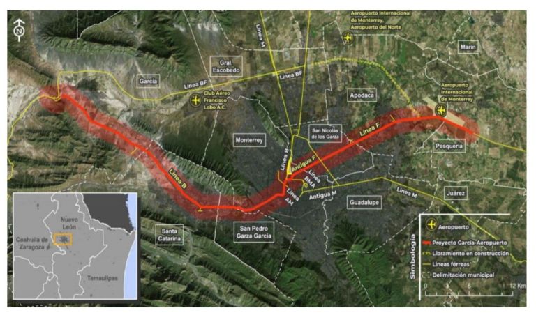 Con la construcción del libramiento ferroviario de Monterrey, disminuirá hasta un 70 por ciento del tráfico de trenes del área metropolitana, recorrerá un área de influencia de aproximadamente 850 mil posibles y dará servicio a aproximadamente 11 millones de pasajeros anualmente que usan el Aeropuerto de Apodaca.