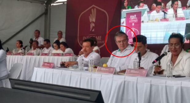 La aparición de Marcelo Ebrard se dio durante el segundo informe de actividades de Abelina López Rodríguez, alcaldesa de Acapulco, ahí fue interceptado por distintos medios de comunicación a quienes solo dio breves declaraciones respecto a que mañana lunes hablará sobre su permanencia en Morena.