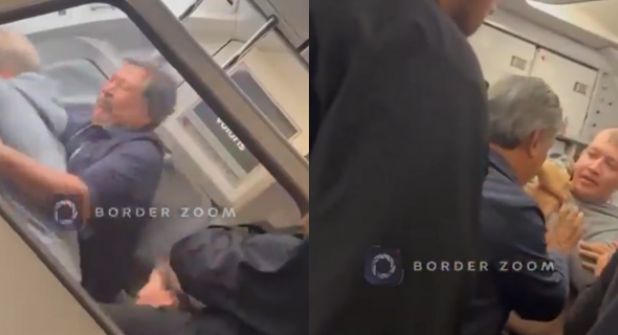 El video cuya duración es de apenas 59 segundos fue grabado por uno de los pasajeros y aunque mueve la cámara de manera constante, es posible observa que el hombre quien vestía un suéter en color gris tuvo que ser sujetado por otros hombres, quienes serían pasajeros del vuelo.