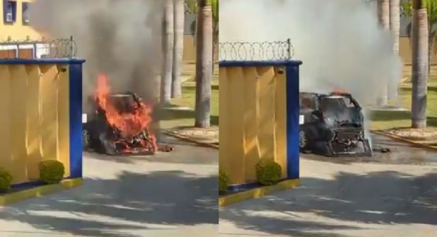En la plataforma de 'X', antes Twitter, se viralizó un video e imágenes de la camioneta en llamas en la entrada del motel 'La Sabana', el cual está ubicado sobre la avenida Real en Huaquechula.