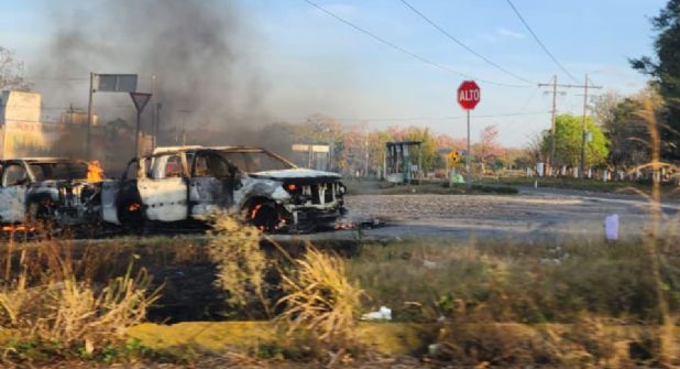 Los violentos enfrentamientos entre células de los cárteles de Sinaloa y Jalisco Nueva Generación (CJNG) dejaron además un saldo inicial de al menos cuatro camionetas en llamas y dos vehículos abandonados con las puertas abiertas.