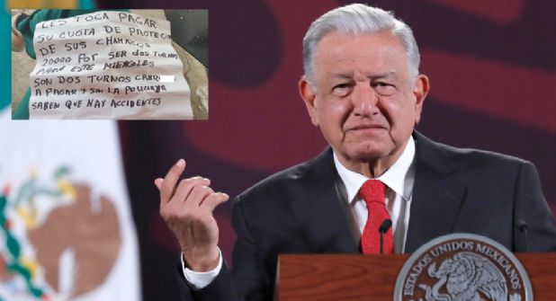 "Les toca pagar su cuota de protección de sus chamacos (niños). 20 mil pesos por ser dos turnos. Para este miércoles. Son dos turnos, cabrones. A pagar y sin la Policía. Saben que hay accidentes", señala el mensaje.