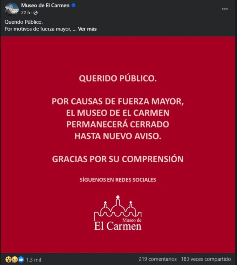 Estos dos últimos publicaron en sus cuentas oficiales de Facebook que el cierre se debió a “causas de fuerza mayor”, y que se desconocía la fecha de reapertura.
