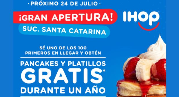 Monterrey.- Una vez más IHOP continúa sorprendiendo a sus clientes y en esta ocasión lo hace más cerca de ti: la nueva sucursal en el municipio de Santa Catarina te invita a su gran inauguración este próximo lunes 24 de julio.