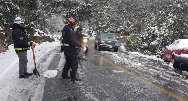 Ante esto, la corporación estatal se dio a la tarea de esparcir sal por el pavimento, tratando de que la capa de hielo se vea derretida.