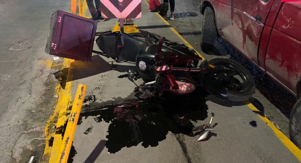 Este hecho ocurrió luego de que aparentemente la camioneta intentó esquivar un registro de la línea de teléfonos que permanece abierto y por lo que golpeó por un costado a la moto, luego el vehículo perdió el control y terminó por estamparse contra dos boyas de contención de una gasolinera del lugar.