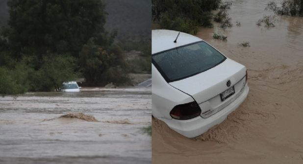 García.- Tras las fuertes lluvias de este fin semana, un vehículo fue arrastrado por la corriente del río Salinas, en el municipio de García, Nuevo León, en sus límites con Ramos Arizpe, Coahuila.