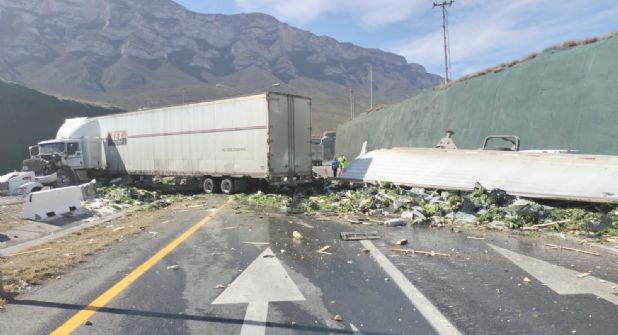 El tráiler iba cargado con producto, aparentemente verdura, y eso es posible verlo en las fotografías, donde se aprecian manchas verdes sobre la carpeta asfáltica.