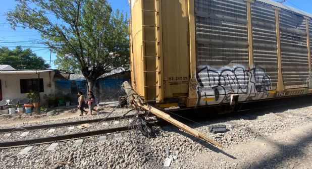 El reloj marcaba las 15:00 horas, cuando el tren, en su desplazamiento, se llevó consigo un cableado contra un poste de luz, provocando también la caída del cableado de telefonía y electricidad de CFE, lo que resultó en importantes daños materiales.