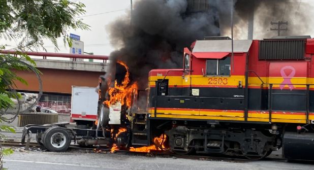 La primera información menciona que la locomotora, propiedad de la empresa Kansas City, arrolló a dicho tráiler sin que se registraran personas lesionadas.