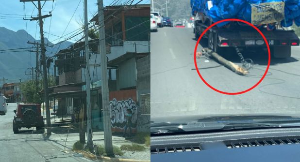 Monterrey.- Un tráiler que transportaba uno de los nuevos vagones del Metro, ocasionó daños en un poste de luz sobre la avenida Aztlán.