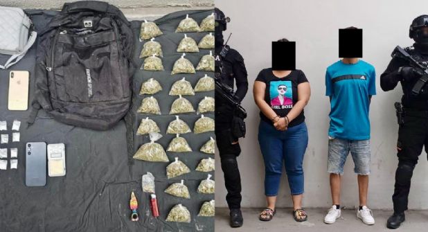 “Fuerza Civil realizó la detención de una pareja, que llevaba drogas en sus pertenencias; esto en el norponiente de Monterrey. El arresto de Malenni “N”, de 30 años de edad y Brayan “N”, de 22; sucedió en calles de la colonia Central”, se lee en el texto de las autoridades estatales.