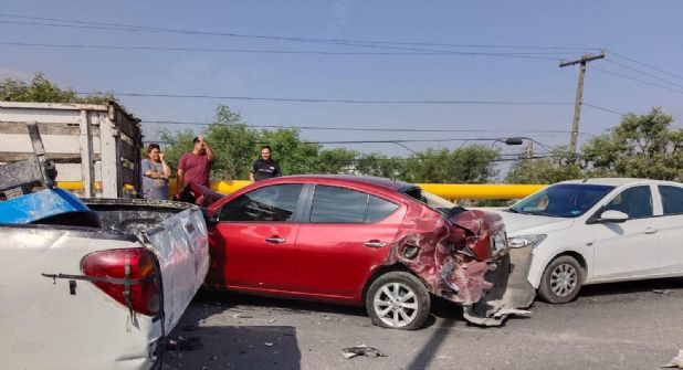 Escobedo. – Un choque múltiple donde participaron al menos 12 vehículos sacudió esta mañana la vialidad en el Puente Libramiento Noroeste, en el municipio de Escobedo.