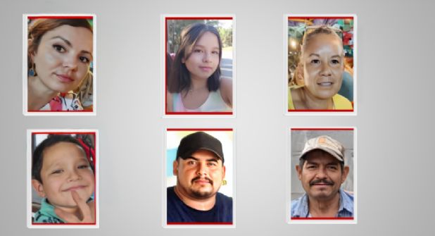 Los desaparecidos fueron identificados como Consuelo Cervantes Herrera, de 35 años; Clara Anali Flores Cervantes, de 16 años; Ana Margarita Herrera Lozano, de 53 años; José Valentín Flores Cervantes, de 7 años; Guillermo Coronado Martínez, de 30 años y Eleno Cervantes Muñoz, de 57 años.