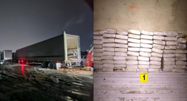 El hallazgo se llevó a cabo durante una inspección a una caja de la marca Great Dane, que se encontraba ganchada a un tractocamión de la marca Kenworth.