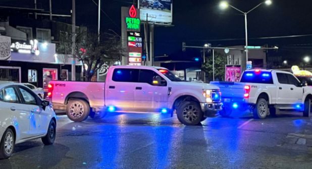 El movimiento se concentró sobre la calle séptima en su cruce con la avenida Enrique C. Livas, donde se ubicó una camioneta Chevrolet Silverado, en color negro y con placas PY-0194-B, la cual lucía estrobos que se mantenían encendidos al momento de la detención.