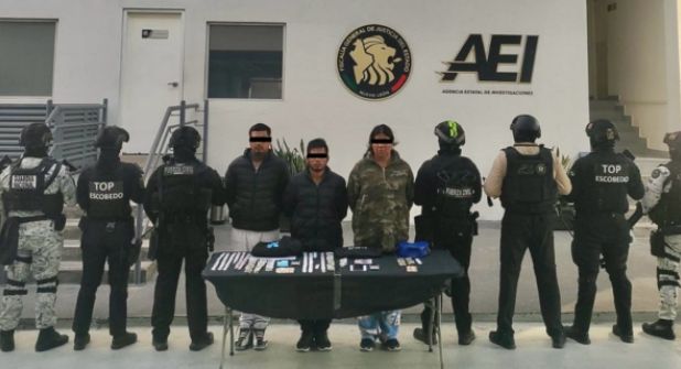 La detención de los sospechosos, identificados como Bryan “N”, de 27 años; Fernando “N”, de 30; Laura “N”, de 45; además de un adolescente de 14 años, se concretó este sábado en la colonia Fomerrey 35, en Monterrey.