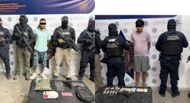 Los arrestados, identificados como Pablo "N", de 23 años, y Leonardo "N", de 25 años, fueron capturados en distintos puntos del sector, en posesión de narcóticos y armas de fuego.