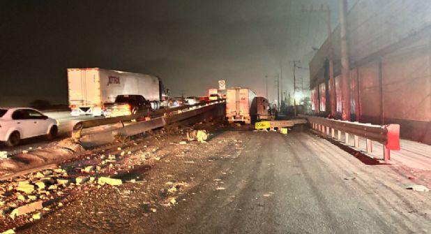 Escobedo. - Un aparatoso accidente vial se registró la mañana de hoy en el Libramiento Noroeste, específicamente en la Carretera a Colombia, dentro del municipio de Escobedo, Nuevo León.