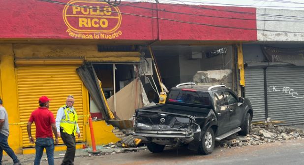 Transcurridas las horas, el propietario del establecimiento llegó al sitio para revisar la situación y evitar algún robo, pero mientras esto sucedía, la conductora de una camioneta Nissan en color blanco impactó por la parte trasera la camioneta del dueño de la pollería.