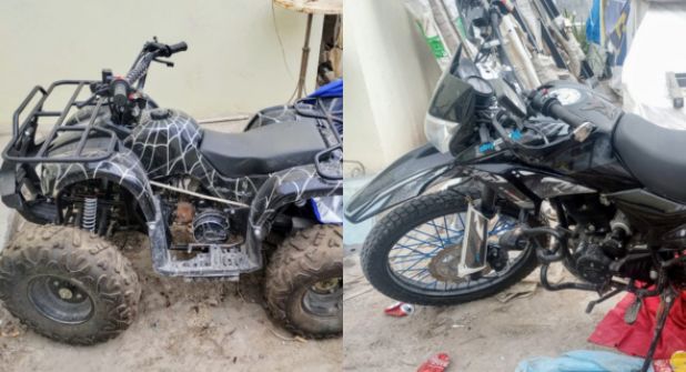 Los móviles asegurados consisten en una motocicleta y una cuatrimoto, ambas de color negro, las cuales quedaron bajo resguardo para su análisis e integración a la carpeta de investigación correspondiente.