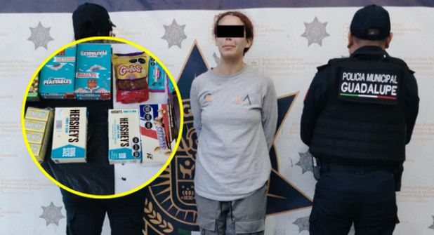 Guadalupe.- Una mujer fue detenida tras robar de una tienda de conveniencia un total de 180 chocolates.