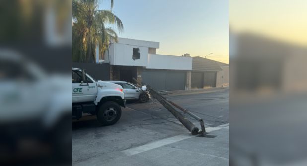 Y aunque no dejó personas lesionadas, sí ocasionó pérdidas materiales, pues el poste cayó arriba de una camioneta y la fachada de una casa se dañó.