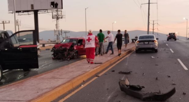 Monterrey. - Un accidente tipo carambola se registró esta mañana en el paso a desnivel de las avenidas Rangel Frías y Ruiz Cortines, al poniente de Monterrey, sin que se reportaran personas lesionadas, únicamente daños materiales.
