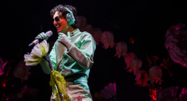 Después continuó con “Himno”, “Bien Hecho”, “TSQ” y “Manada”; en algunas canciones fue acompañado por bailarines disfrazados de arbustos.