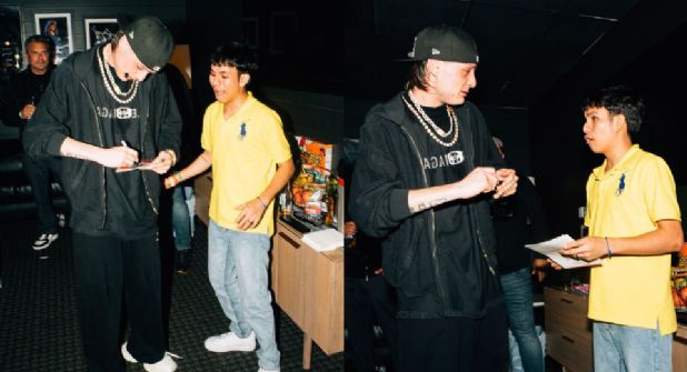 Peso Pluma le prometió como muestra de agradecimiento por haberlo esperado desde la madrugada y por varias horas, pasarlo a su camerino.
