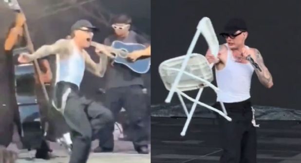 En otro clip se observa que, incluso, uno del staff del evento le ofreció una silla de color blanco, pero el intérprete de 'Bellakeo' la lanzó hacia un lado del público.