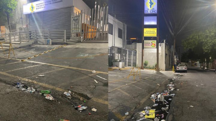 Simpatizantes de candidatos dejan basura afuera del IEEPC NL