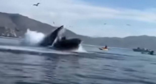 Los Ángeles.- Dos mujeres que se encontraban a bordo de un kayak en una playa en el estado de California cuando fueron tragadas por una ballena jorobada y después fueron escupidas.