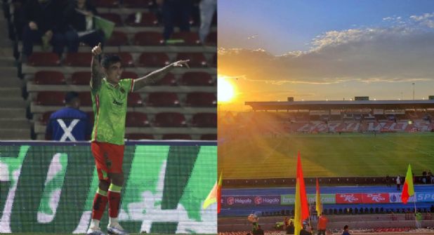 La imagen muestra parte del terreno de juego del Estadio Olímpico Benito Juárez mientras el sol estaba cerca de esconderse.