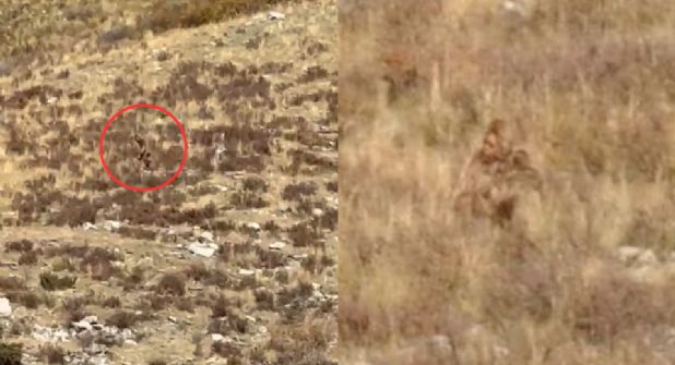 Más tarde, las personas captaron como la criatura se sentó en el terreno árido y cubierto de maleza.