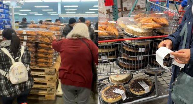 A su vez, otras imágenes ponen en evidencia cómo una mujer lleva su carrito de supermercado repleto de pasteles. Incluso, también se muestra el momento en que una mujer rompe en furia ante la multitud de las personas que están a la espera de que el personal de Costco cocine una mayor cantidad de postres.