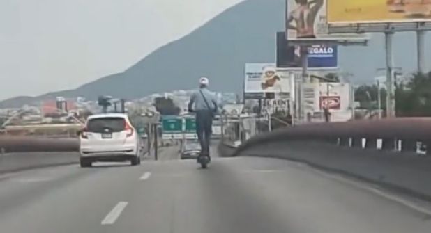 Monterrey.- Un hombre fue captado este domingo 4 de junio circulando a bordo de un patín eléctrico en la avenida Morones Prieto en Monterrey.