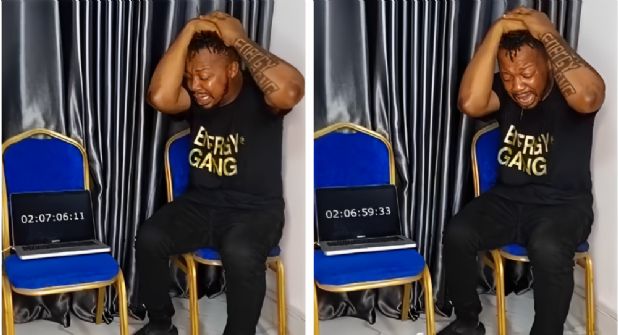 En las grabaciones se le puede ver sentado en una silla mientras llora; al lado se muestra un cronómetro que le indica que lleva más de dos horas en el reto.