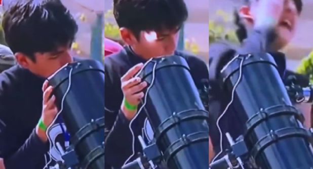 "¿Quién tiene el clip del niño manejando mal el telescopio y disparándose en la cara?”, preguntó el hombre y minutos después llegó un usuario llamado Aarón y compartió el material que se ha hecho viral en redes sociales.