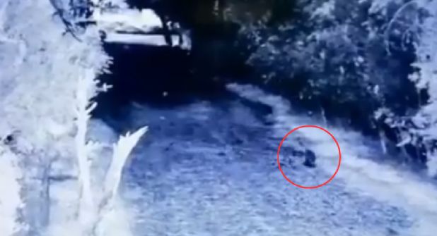El video muestra lo siguiente: El entorno de una vereda rodeada de naturaleza, en cuyo lado izquierdo se divisa la aparición de una mancha color oscura que comienza a moverse hacia la derecha.